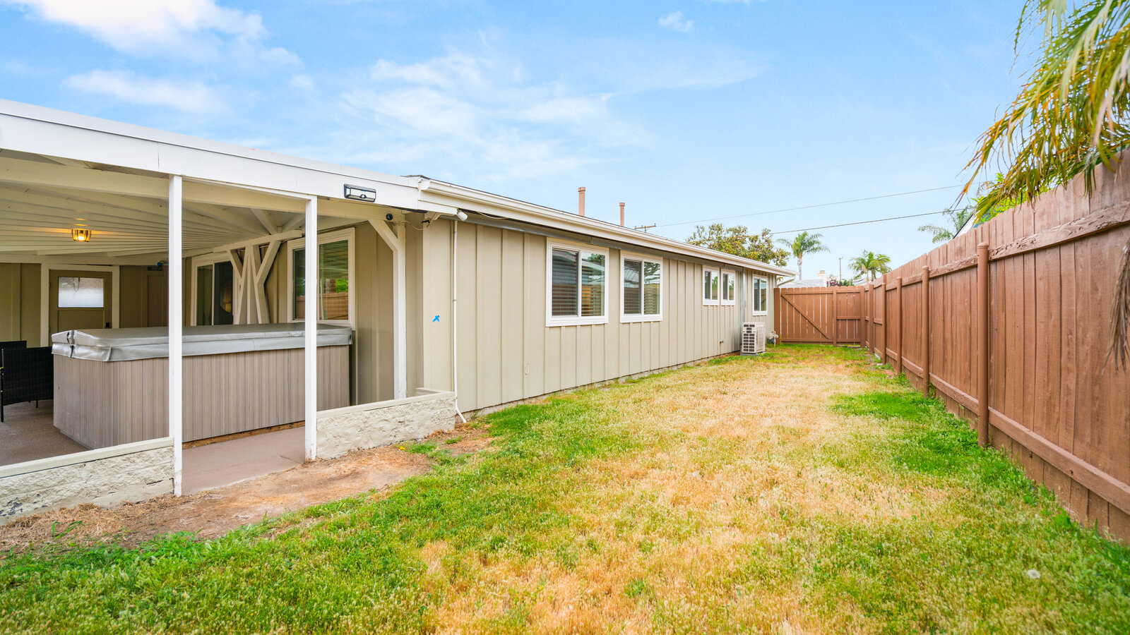 Enjoy your backyard oasis. Backyard has a large covered patio with a 6 person hot tub with Jets. Yard is fully Fenced in