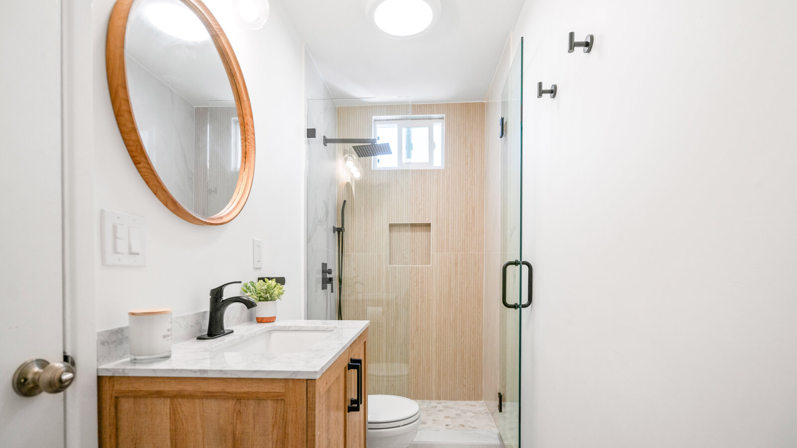 The bathroom was designed to make you feel like you are at the spa featuring a luxurious rainfall shower head with all new tiles and flooring. The bathroom is equipped with a starter pack of toilet paper, hand soap, shampoo, conditioner, and body wash.
