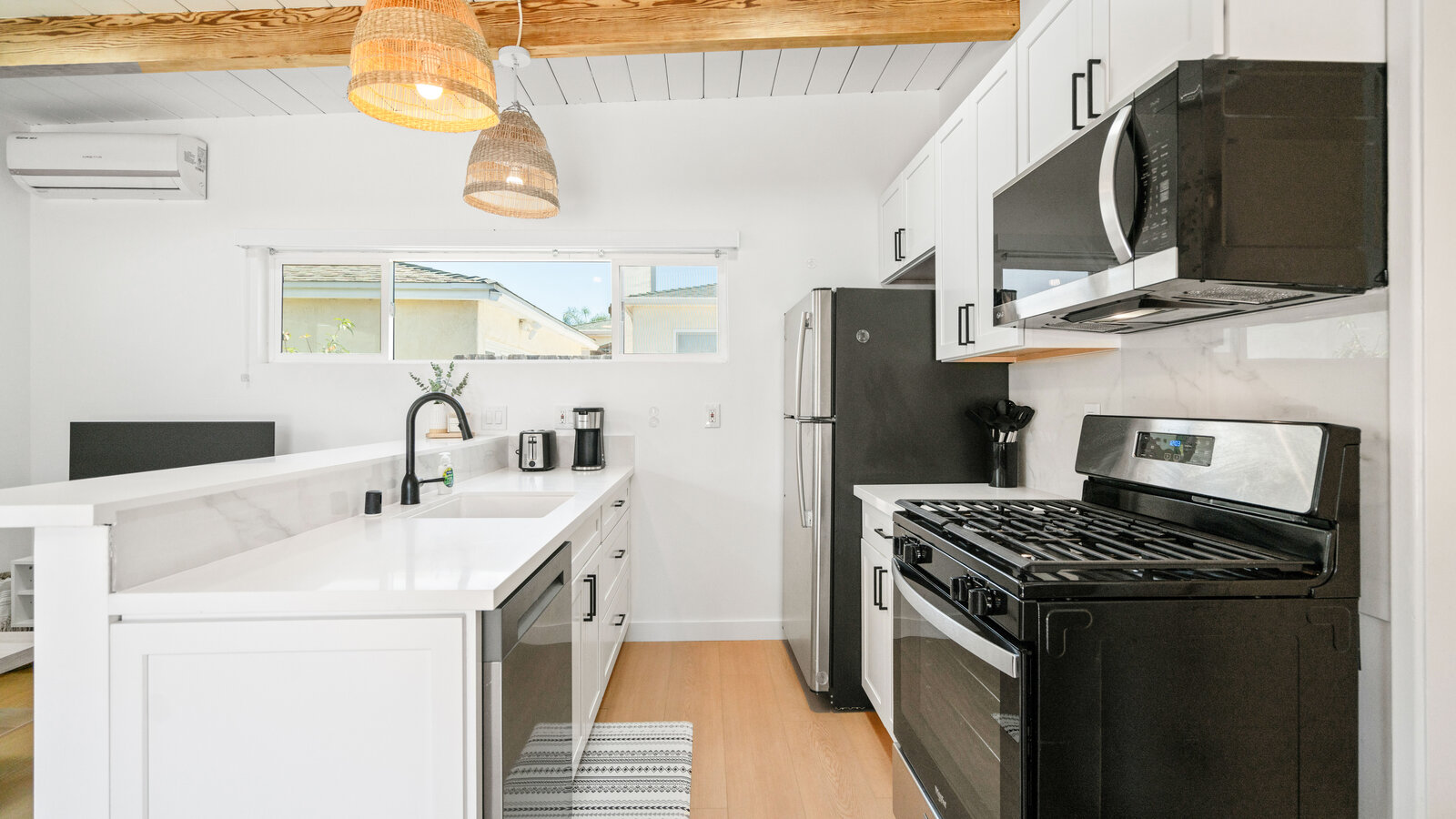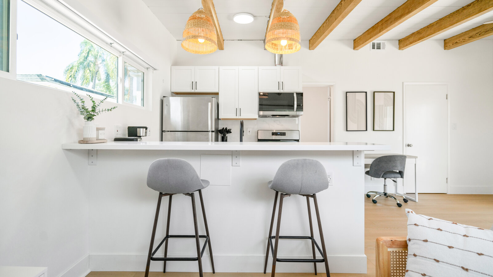 This place is made to give you a luxurious long stay while making you feel right at home. This studio has an open floor plan and was just remodeled in 2024. The kitchen opens up to the living room and comes equipped with a breakfast bar. And don’t forget about the high speed internet, smart TV, mini split with A/C , black out shades, premium linens , and premium towels provided. This place has it all!