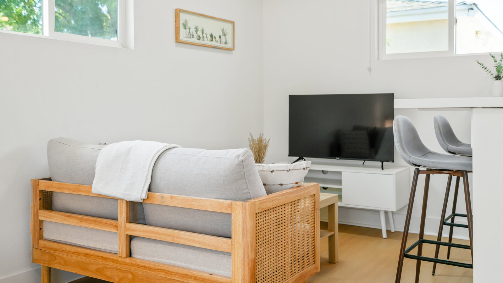 This cozy place comes equipped with a sofa, 43” smart flat screen TV with streaming capabilities. The space is uniquely designed with comfort in mind to provide a peaceful place to unwind.